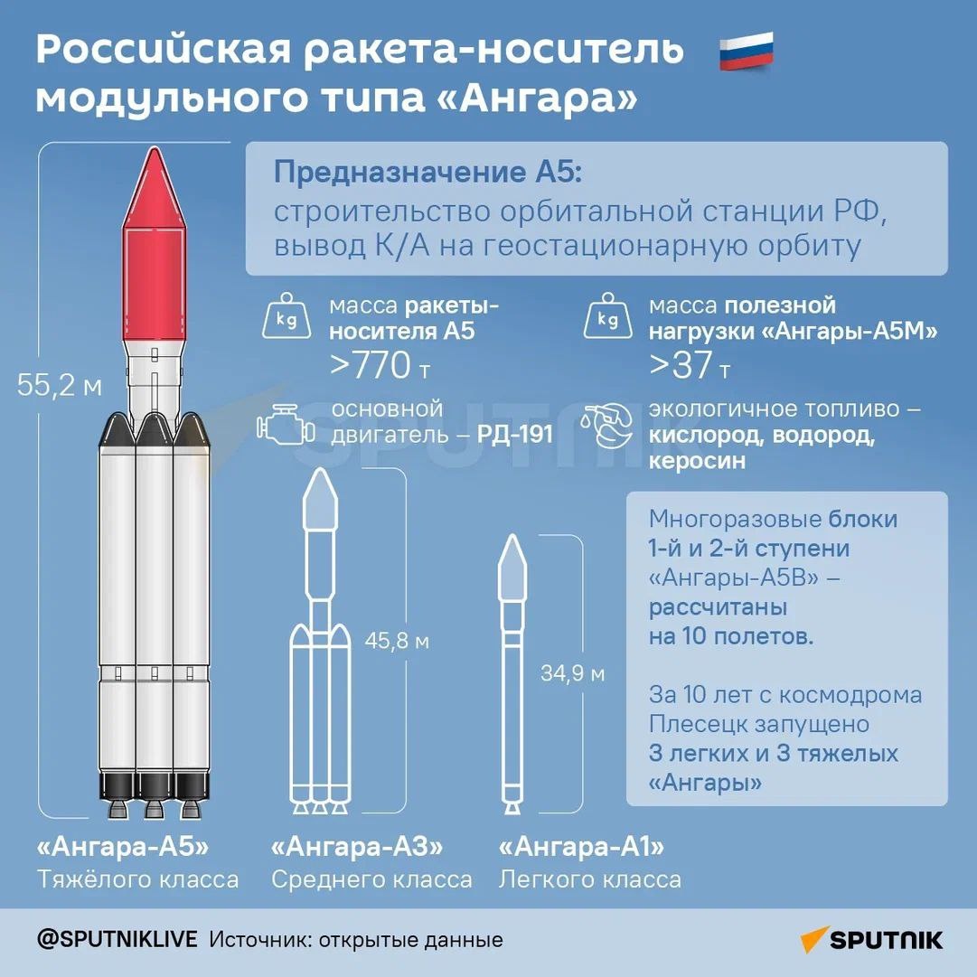 В ответ на пост Что известно о трехступенчатой тяжелой ракете "Ангара-А5", которую сегодня успешно запустили с космодрома Плесецк: ▫️Может использоваться в военных целях, в первую очередь для доставки на орбиту военных спутников, аппаратов разведки и средств связи. ▫️Относится к семейству ракет-носителей с максимальной массой полезной нагрузки более 37 тонн. ▫️Использует экологически чистое топливо — керосин, водород и кислород, вместо сверхтоксичного гептила, на котором летают другие ракеты. ▫️Способна доставлять тяжёлые космические аппараты на геостационарную орбиту. @SPUTNIKBY