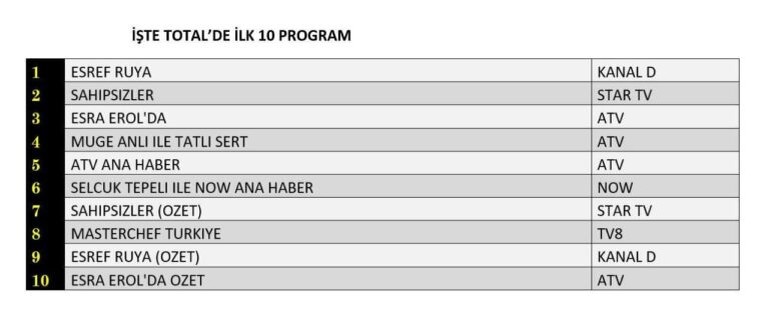 Что творится на турецком телевидении? 🔥 В среду, 18 июня 2025 года, зрители вновь доказали: драмы и реалити-шоу правят бал! Кто лидирует, кто отстаёт, а кто неожиданно прорвался в топ? Редакция сайта cheek-look.ru разбирает горячие цифры и скрытые интриги закулисья. 🎭 Кто бы сомневался? «Мечта Эшрефа» на Kanal D вновь на вершине! Сериал не просто выиграл в Total, AB и ABC категориях — он разгромил конкурентов. Зрители в восторге от поворотов сюжета, а соцсети пестрят теориями: что же ждёт главного героя в следующей серии? 📊 Star TV с «Беззащитными» и atv с «Esra Erol’da» сражались насмерть. В итоге «Беззащитные» взяли серебро в Total и ABC, но в AB категории уступили «Müge Anlı ile Tatlı Sert». Интересно, почему реалити-шоу оказалось сильнее драмы? Может, зрителям надоели слёзы и захотелось жёстких разборов? 💔 А где же «Опасные улицы» или «Лейла»? Их нет в топ-3, и это повод для дискуссий. Может, сценаристы потеряли хватку? Или аудитория просто устала от привычных форматов? Зато «M