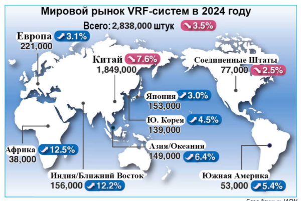 VRF-систем сократился на 3,5% с примерно 2,9 млн единиц оборудования в