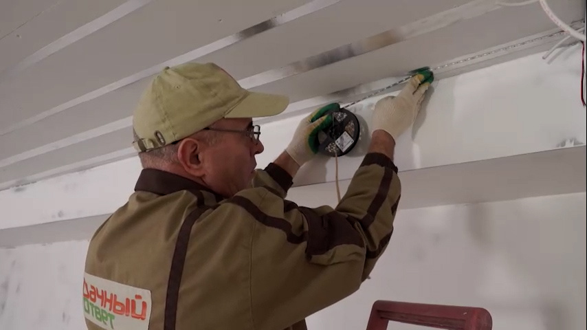 Японские мотивы в интерьер традиционной русской дачи привнесли авторы очередного выпуска передачи «Дачный ответ» на телеканале НТВ. В проекте они использовали 75 м светодиодной ленты IEK. На мысль о Стране восходящего солнца дизайнера Ксению Лысенко натолкнул низкий потолок в гостиной. Он же, кстати, был главной проблемой помещения: даже четырех окон не хватало, чтобы осветить комнату в 30 кв. метров. Дизайнер придумала оригинальное решение: имитацию окна в потолке. Для этого на него с помощью металлизированного скотча прикрепили светодиодную ленту. Затем под потолком собрали металлокаркас и натянули специальное пропускающее свет полотно. И завершили создание «окна» рамой: установили легкие балки из пенополиуретана, декорированные под дерево. Светодиодная лента IEK как нельзя лучше подходит для такого проекта. Она работает от бытовой сети переменного тока и легко монтируется. В ассортименте несколько цветов: теплый белый, холодный белый, синий, зеленый, красный, RGB. Лента может эксп