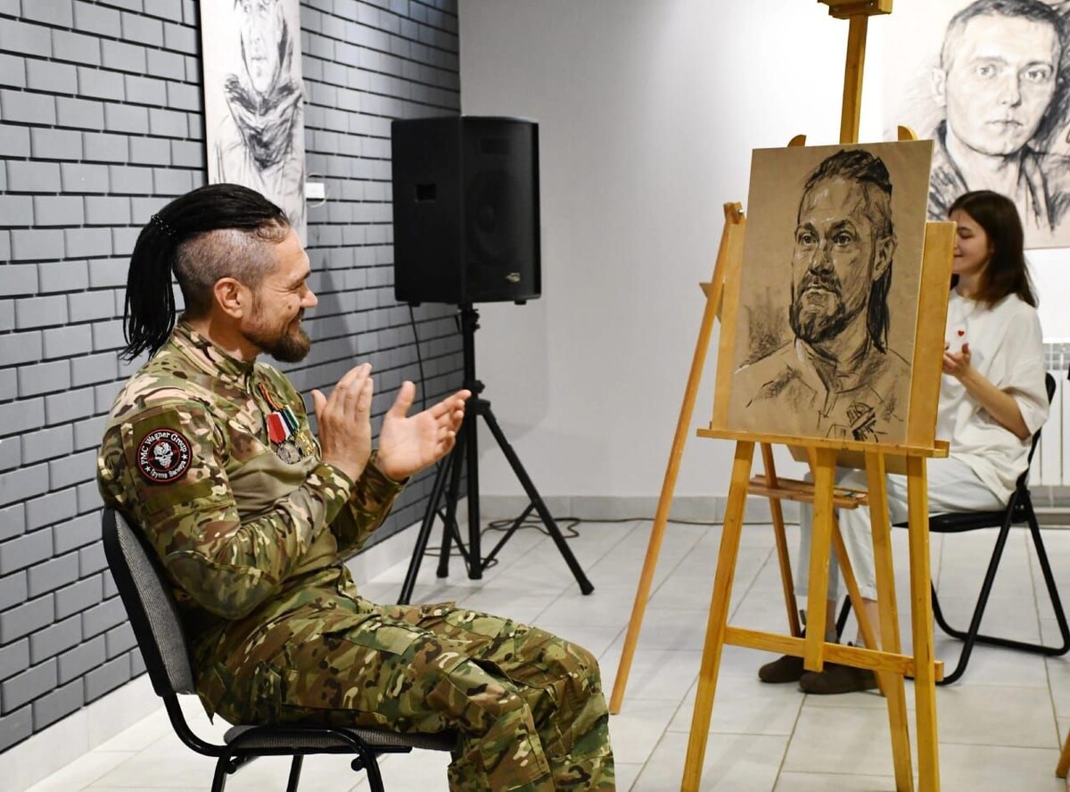 В Набережных Челнах в рамках выставочного проекта «Уголь Донбасса» член Московского союза художников и Творческого союза художников России Сергей Марченко провел мастер-класс, на котором челнинцы рисовали портрет ветерана СВО – бойца с позывным Катана, Ильдара Карюкова.