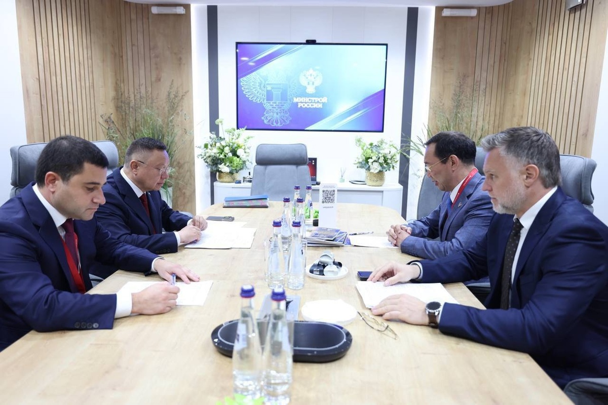 На полях ПМЭФ'25 состоялась рабочая встреча Министра строительства и ЖКХ РФ Ирека Файзуллина и Главы Республики Саха (Якутия) Айсена Николаева