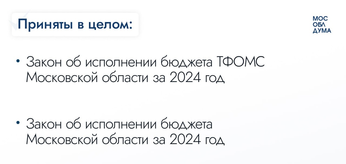 🔹Слушания по годовому отчёту об исполнении бюджета Московской области за 2024 год состоялись в Мособлдуме 10 июня
