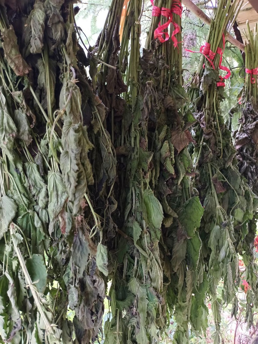 Под навесом дегидрируются веники крапивы, маты. Заготовки на зиму. И курам в мешанку, и нам в чаи.