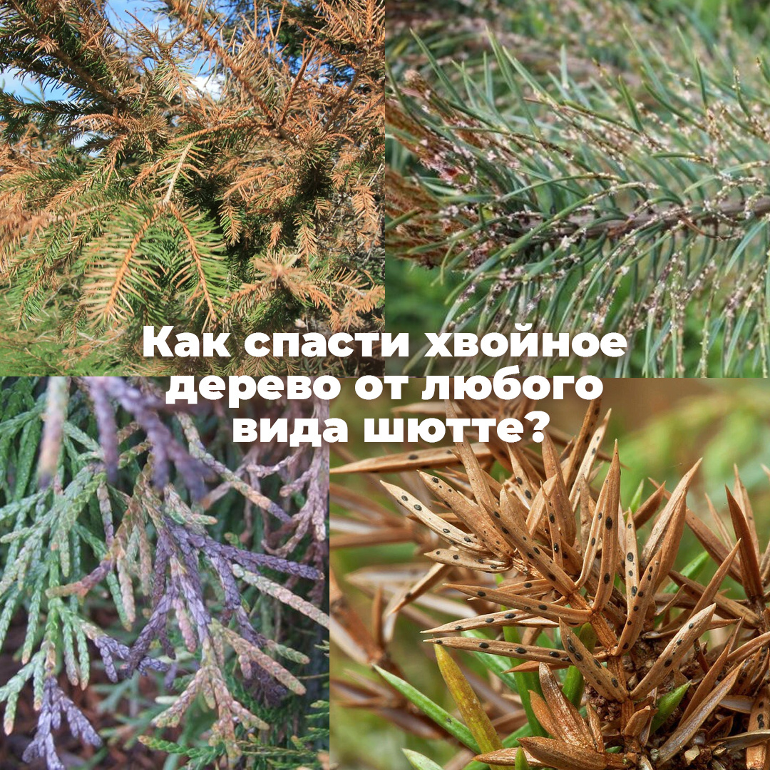 – образование пикнид на хвое. В России у хвойных деревьев встречаются различные виды шютте, вызываемые фитопатогенными грибами. Рассмотрим жизненный цикл шютте сосны обыкновенного (возб. Lophodermium seditiosum). При заражении дерева фитопатогенным грибом первые признаки заболевания появляются осенью в виде желтых пятен на хвое. Весной, через 3–10 дней после схода снега, хвоя краснеет и отмирает. С середины апреля на ней образуются пикниды — мелкие, черные, эллиптические, часто сливающиеся в цепочку. Апотеции (плодовые тела) образуются