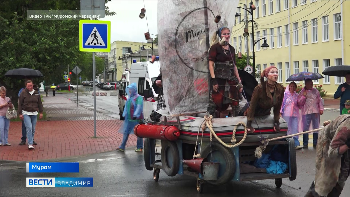 За один день зрителям показали 36 представлений и шоу-программ, которые не стали отменять из-за дождя. Подробности у Натальи Ковалёвой. Праздник уличного театрального искусства стал уже традиционным для Мурома - ежегодно он собирает сотни туристов из разных уголков страны. В декорациях древнего города свои лучшие спектакли показывают профессиональные и любительские коллективы из Севастополя, Казани, Тулы, Твери, Воронежа, Москвы ,Санкт-Петербурга.. Пермский театр привез спектакль " Н2О" . Алексей Миронов, руководитель Пермского театра " Туки-Луки":