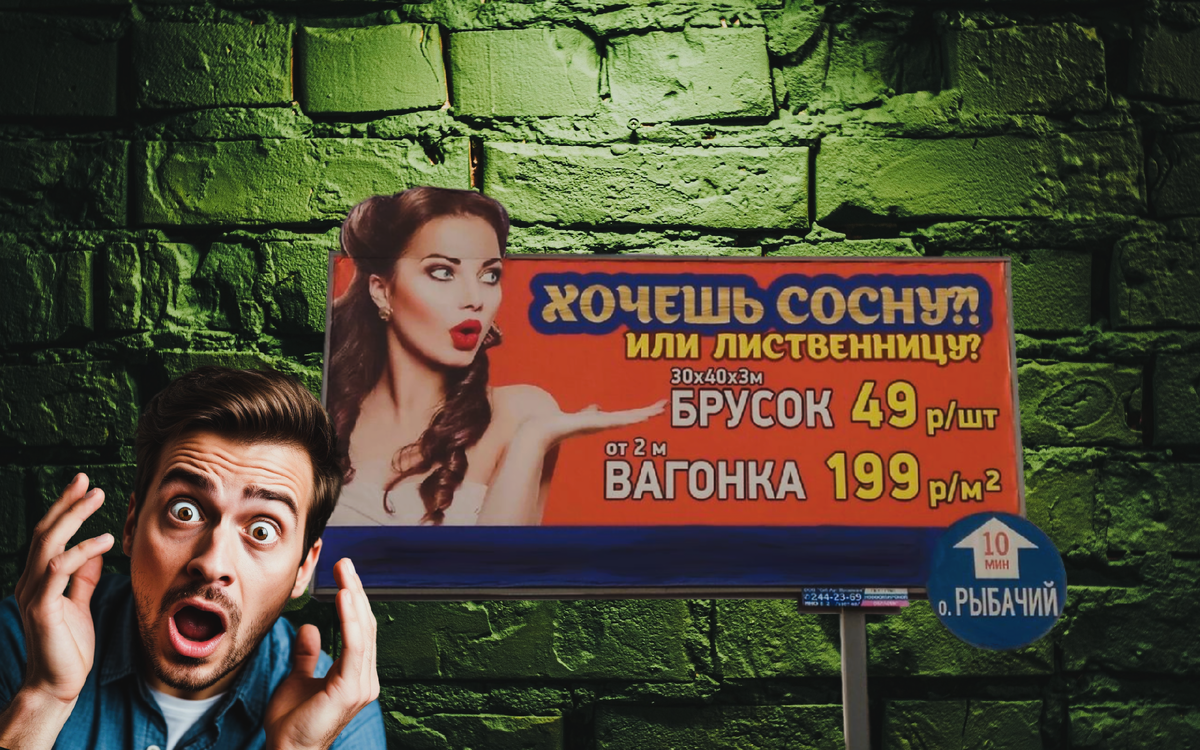 Двусмысленные фразы в рекламах - это гениально. Даже сейчас можно заметить на щитах что-то подобное.