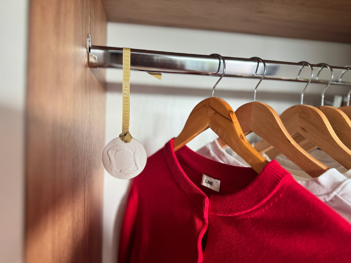 В итоге в отделение со штангой и вешалками я повесила гипсовое саше, пропитанное специальным ароматом. Почему раньше мне никто не рассказал, какая классная это штука?