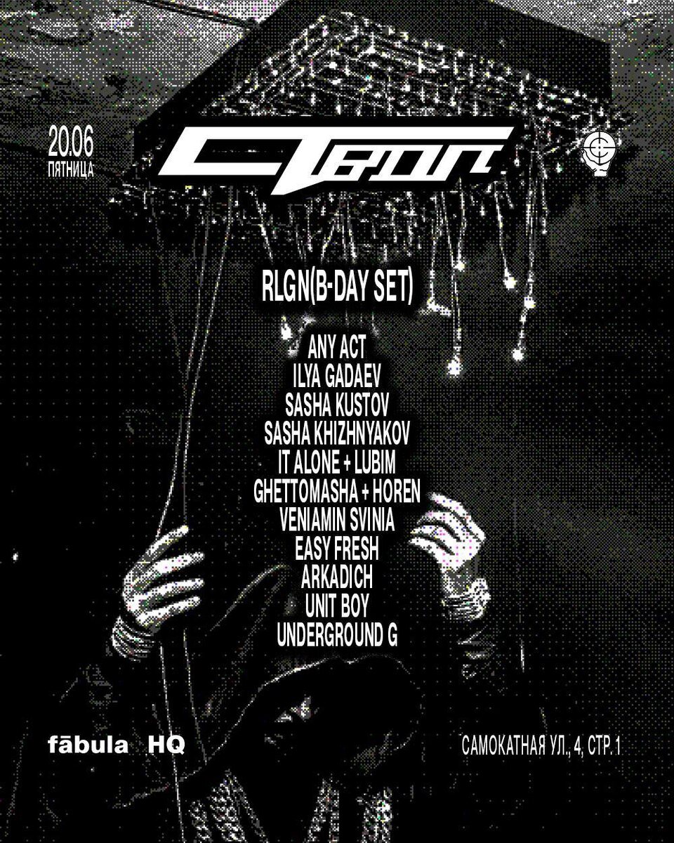 ❤️ STVOL OFFLINE: RLGN BD 20 июня отмечаем День Рождения RLGN с родными и близкими, стволовыми. Ждем всех! • RLGN (B-DAY SET) • ANY ACT • ILYA GADAEV • SASHA KUSTOV • SASHA KHIZHNYAKOV • IT ALONE + LUBIM • GHETTOMASHA + HOREN • VENIAMIN SVINIA • EASY FRESH • ARKADICH • UNIT BOY • UNDERGROUND G 🎫 Билеты в продаже 📆 20 июня, 22:00 📍Fābula Hq, Москва, Самокатная ул. 4с1
