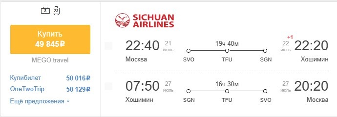 ✈️Москва - Хошимин (Вьетнам), пересадка в Чэнду, туда и обратно, с багажом за 49850 рублей