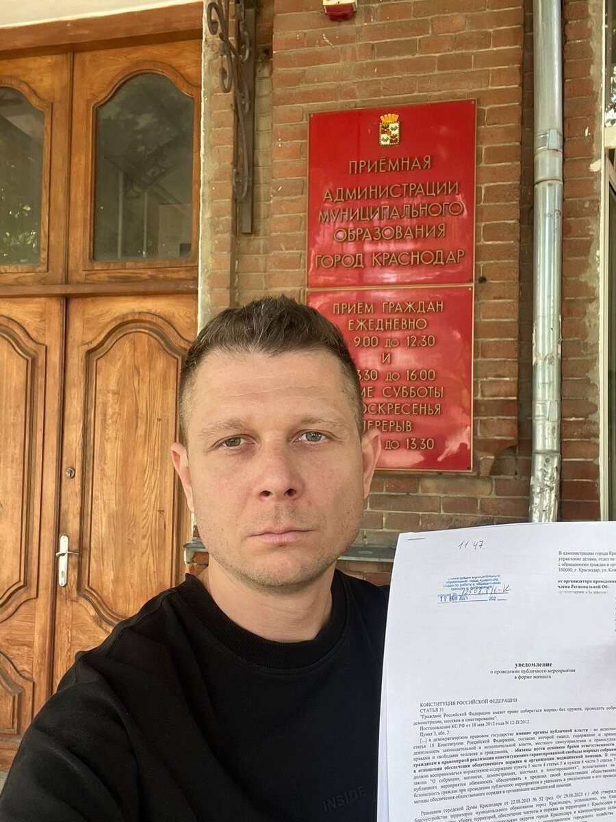 Сегодня в г. Краснодаре представителем нашей региональной общественной организации было подано очередное уведомление о проведении митинга в виду того, что руководство края до настоящего времени не предприняло никаких мер по проведению МВК и выработке механизмов для восстановления нарушенных прав граждан. Также была произведена запись на личный прием к Уполномоченному по правам человека в Краснодарском крае, на котором мы планируем подать пакет документов с более чем тысячью заявлений от пострадавших граждан с приложением реестра объектов, в который уже входит 199 многоквартирных жилых дома (по части данных объектов удалось посчитать число пострадавших, оно составило более 38000 человек)