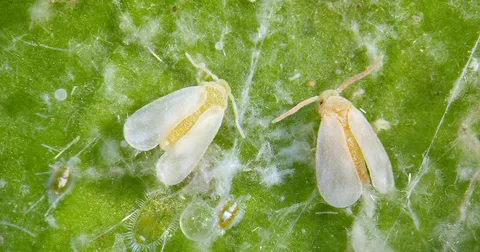Белокрылка - мелкий вредитель размером до 2,5 мм с мучнистым бело-молочным налетом на теле и крыльях. Самка способна отложить до 15 кладок за сезон, каждая из которых содержит 130-290 яиц. Особи становятся половозрелыми через 40 дней, что приводит к быстрому распространению вредителя.