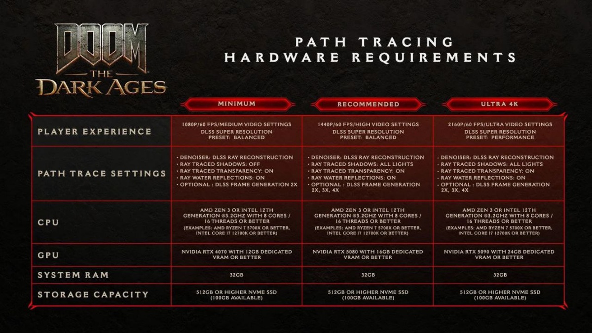 Разработчики DOOM: The Dark Ages подтвердили, что в ПК-версию игры добавят поддержку трассировки пути (path tracing) и встроенный бенчмарк.
