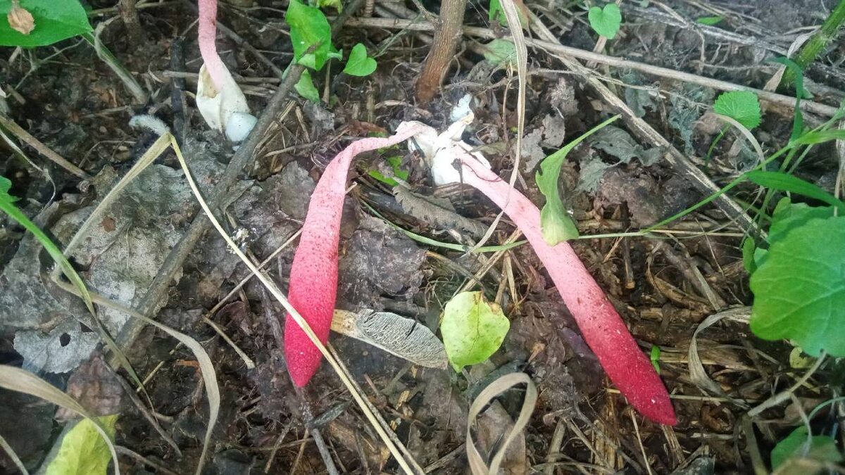 Вышел на крыльцо, почесать затылок. Утро, роса на чесноке поблёскивает, птицы перекликаются. Ляпота. Смотрю, а под сиренью, что-то выделяется на фоне зелени. Это похоже на небольшие красноватые продолговатые продолговатости. И, кажется, оно на тебя смотрит. Ну я подошел потрогал и сорвал. На даче же растет, ничего плохого тут вырасти не должно... Я думал это растение какое, а оказалось, что гриб и не простой. Хочу попросить вас поставить лайк статье и подписаться. Каждый день пишу для вас. Подслушано Секреты Рыболова Начал искать в интернете, взял телефон и не пойму откуда вонь, будто опоссум выпил сбродивший кифир и я в его кучку потом вляпался. Понухал телефон и обалдел. Потом руки начал нюхать. Фууууу. 15 опоссумов будто туда отложили и сами почили в этом.... Оказалось это гриб Мутинус Равенеля. Его ещё кличут "вонючим сморчком", хотя к настоящим сморчкам он не имеет никакого отношения. Эти грибы появляются из яйц. Оттуда резко выстреливает плодовое тело. Растет за считанные часы,