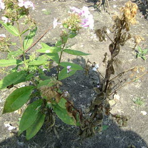 Болезнь распространяется очень быстро, пораженная ткань разрушается, листья усыхают, растения слабо цветут, декоративность их сильно снижается. При высокой степени поражения растения гибнут. Поэтому лечение такой болезни флоксов как мучнистая роса нужно начинать сразу же как только увидите первые признаки.
