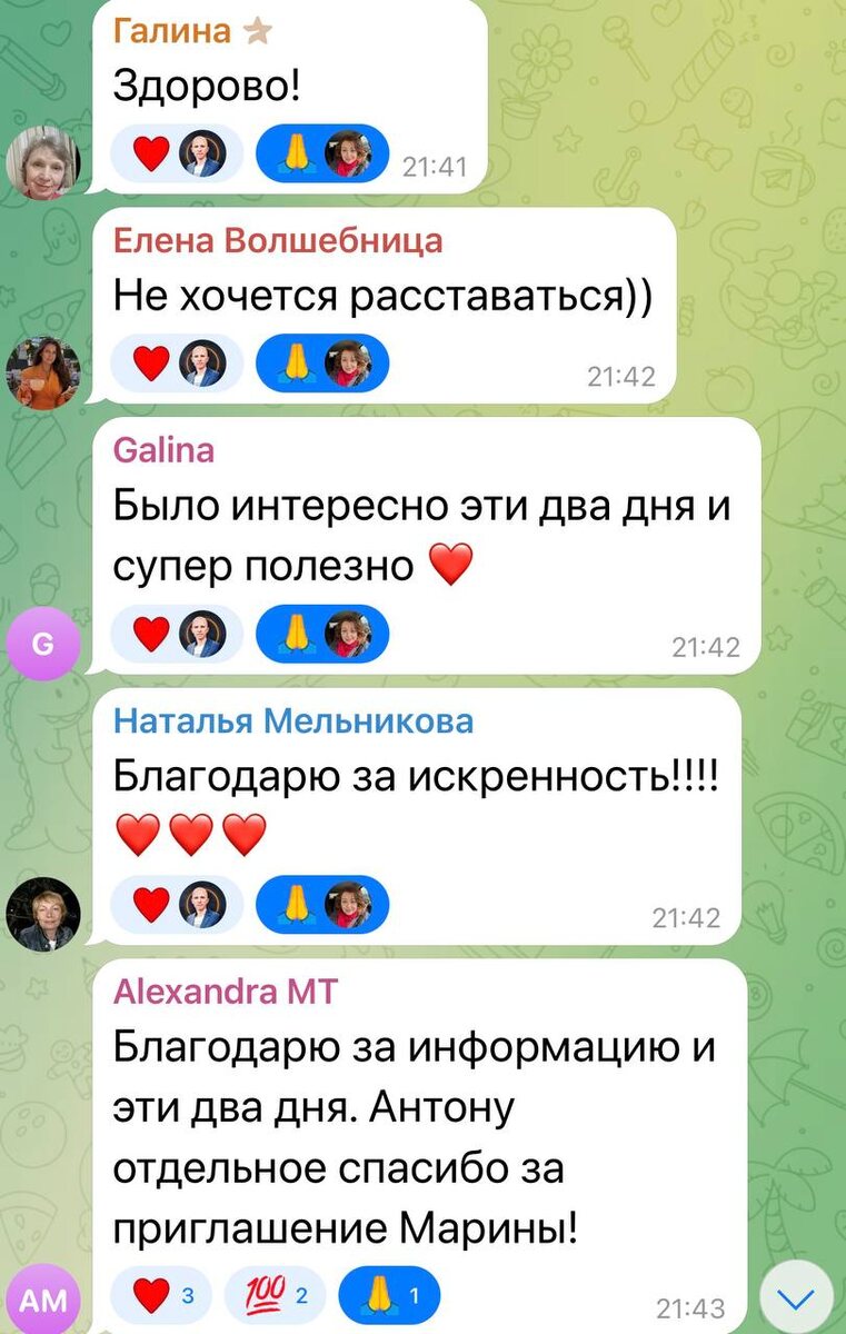 Вот такие осознания были у участников эфира !!! И конечно же благодарности ! Участники уже готовятся к началу марафона - практика!!! Это очень ценно 🙌🫶🫶🫶 До встречи на Марафоне - практике : Деньги нового времени!!!