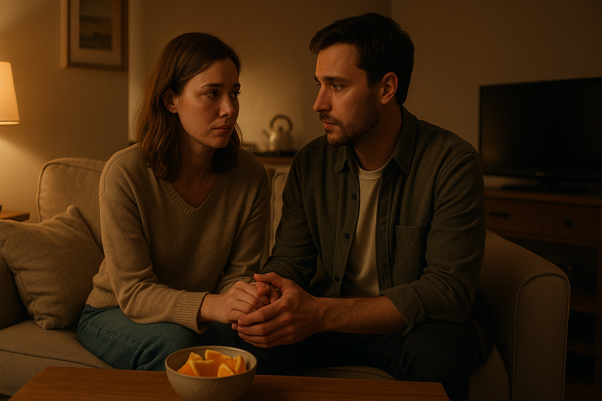 Пятница. Самый невинный вечер недели. Наташа захлопывает ноутбук – приветливое движение плечом, но глаза тут же скользят к телефону. Телефон она держит двумя руками – для тепла, наверное. Я сажусь рядом, как всегда, на своём углу дивана: не слишком близко, не слишком далеко. Между нами – миска с апельсиновыми дольками. Тарелка посредине – граница небольшого состояния. Мы выбираем фильм, перескакиваем с одного триллера на другой, но всё как-то без энтузиазма.