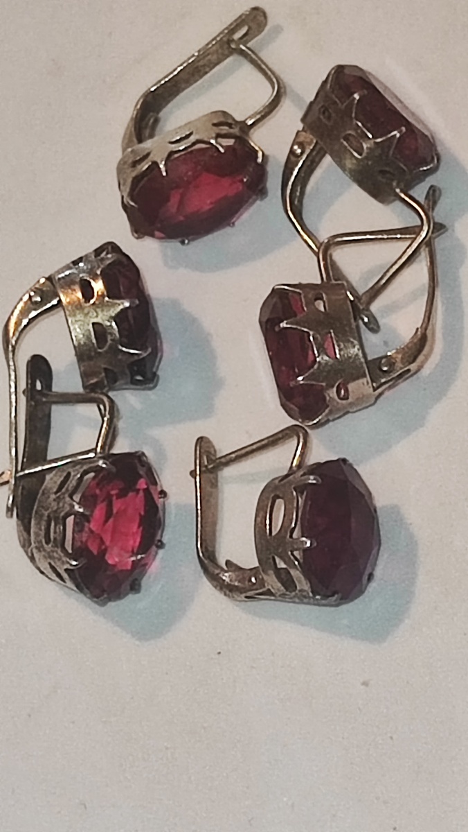 50-е и 60-е года. Вставки - цветное стекло. Одна серьга - "РС", осталюные - соседний завод , СЮ. У РС вставка держится в 6 крапанах, у СЮ - их у любой восемь. :0))) Картельный сговор? :0) Одиночки-потеряшки.... Подбор: Одна - 1957 год... Вторая... Ну, наверно, 1947-й. До 1953 точно. Но послевоенная. :0) Но, так-то "РС" больше по сувенирам... И запонкам, но я уже столько запонок показывал... А сувениры - тоже показывал, но реже. :0) Это набор камушков. А тут про шильдик: люблю такие. Сразу картинка: 1900 г.р. Как говорится судьба повторяла судьбу страны... А вот такой же: И еще: на обсидиане Родонит-лазурит-яшма-амазонит Коробочка: Вторая настенная картина: "Воспоминпние о камне" (ак.Ферсман), про Петергофскую фабрику: :0)))) Есть еще предметы из камня... Но без "опознавательных знаков"... Всем удачи!