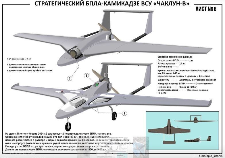 ❗️⚡️По данным издания "Новости Брянска" со ссылкой на ряд источников, ВСУ на протяжении ночи предпринимали попытки нанесения ударов по ряду объектов региона с задействованием БПЛА-"камикадзе" большой дальности "Чаклун-В" (на рус. - "Колдун-В"), компоновочно сходный с БПЛА "Лютый". Беспилотники снарядили боевой частью пластита массой порядка 5 килограммов. Но масса БЧ может составлять и 15 кг. Дальность может достигать 1000 км. Как минимум 12 дронов были перехвачены зенитно-ракетными средствами ВКС РФ, включая ЗРПК "Панцирь-С1". https://dzen.ru/id/6425916a1950720421f18802