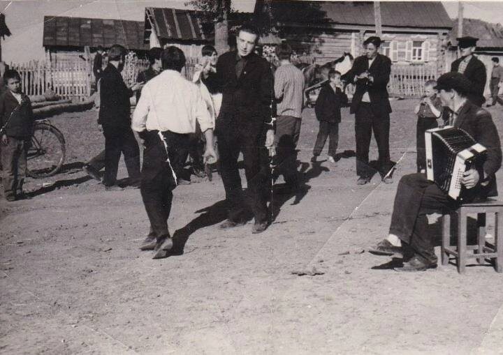 🏡Хуҗа Хәсән авылы егетен Николай Волковны армиягә озату күренеше. Ул Уссурийск шәһәрендә хезмәт иткән. Гармунчысы🪗– Николай Венедиктов. Гармунчы янында кара кепкадан Иванов Варсонофий, ә янындагы бәләкәй малай – Матвеев Славик.