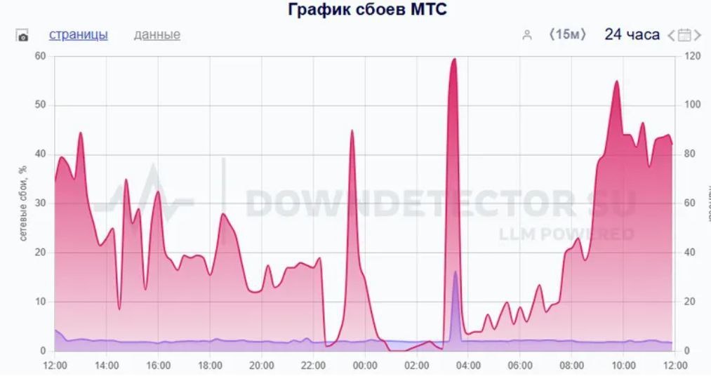 ⚡За сутки поступило несколько тысяч жалоб на сбои в работе МТС, t2, YOTA, МегаФона и популярных приложений