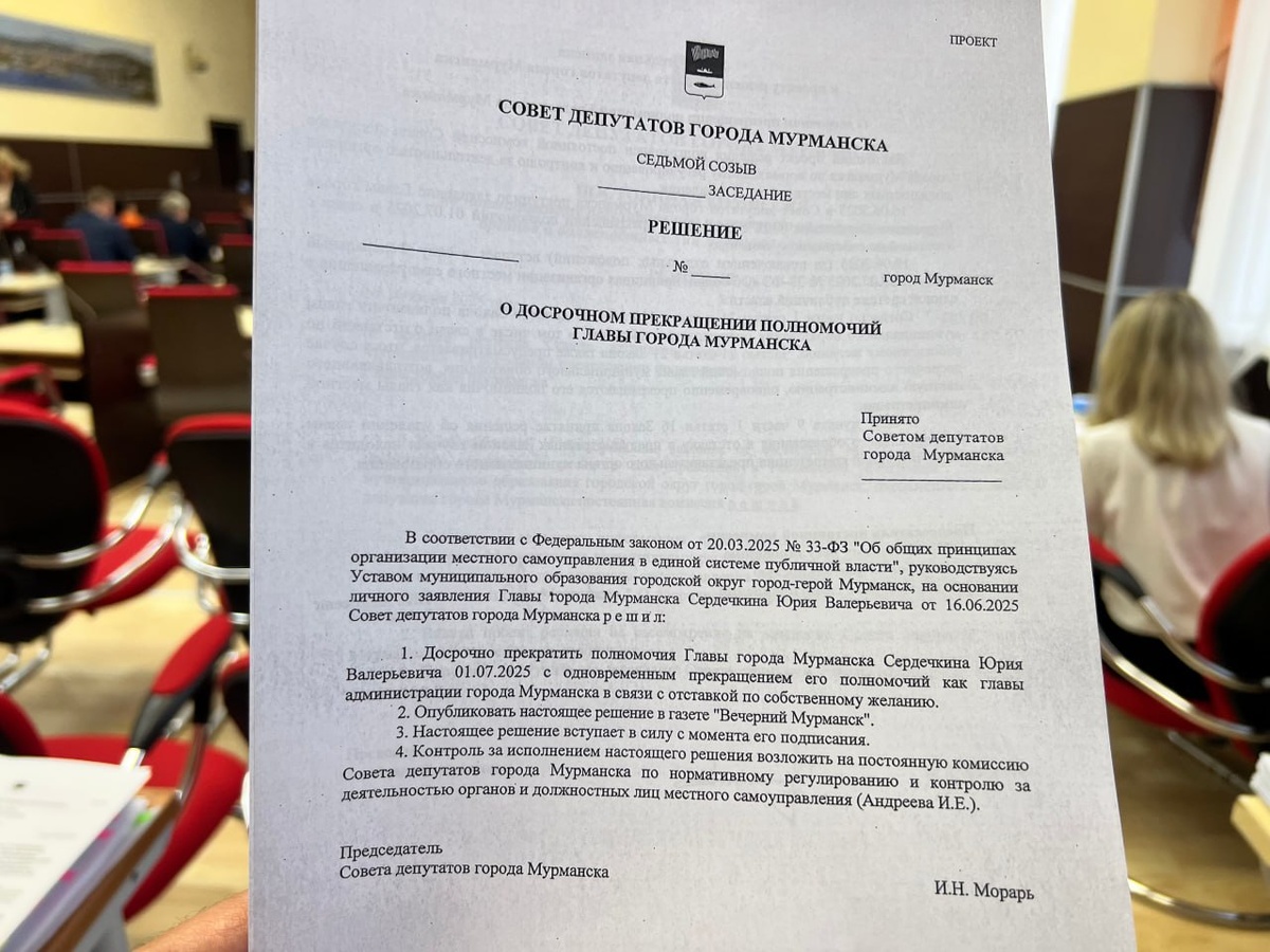 🚢 Последний вопрос последнего в этом сезоне заседания Совета депутатов Мурманска – «О досрочном прекращении полномочий Главы города