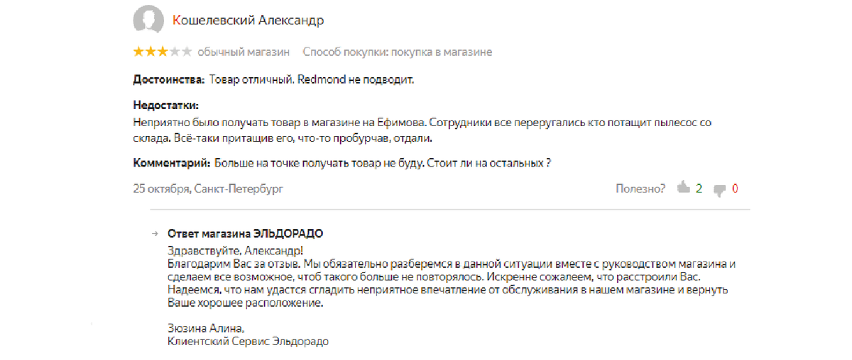 «Добрый день, Андрей! Я — Евгений Соколов, владелец компании „Кроссовки и футболки“. Сожалеем о вашем опыте и просим вас связаться с нами по электронной почте для детального разбора ситуации».