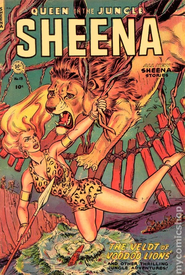 Шина, Королева Джунглей (Sheena, Queen of the Jungle), — одна из первых и самых известных героинь в истории комиксов. Её дебют состоялся в британском комиксе *Wags* в 1937 году, а затем в американском *Jumbo Comics #1* (1938), изданном компанией Fiction House. Создателями Шины стали писатель Уиллис О'Брайен и художник Уилл Айснер — позже получивший мировую славу как автор "The Spirit" (Спирит). Шина стала первой женщиной-супергероем, получившей собственную серию комиксов — за четыре года до Чудо-женщины. Это делает её по-настоящему революционным персонажем в мире комиксов, а её популярность в 1940-х годах была колоссальной. Шина быстро стала символом приключенческого жанра и феминизированной версии Тарзана. По классической версии истории, Шина — дочь ученого-антрополога, оказавшегося в африканских джунглях. После гибели отца она была воспитана местным шаманом, выучила языки племен и язык животных. С раннего возраста она овладела охотой, боевыми искусствами и научилась выживать в самых