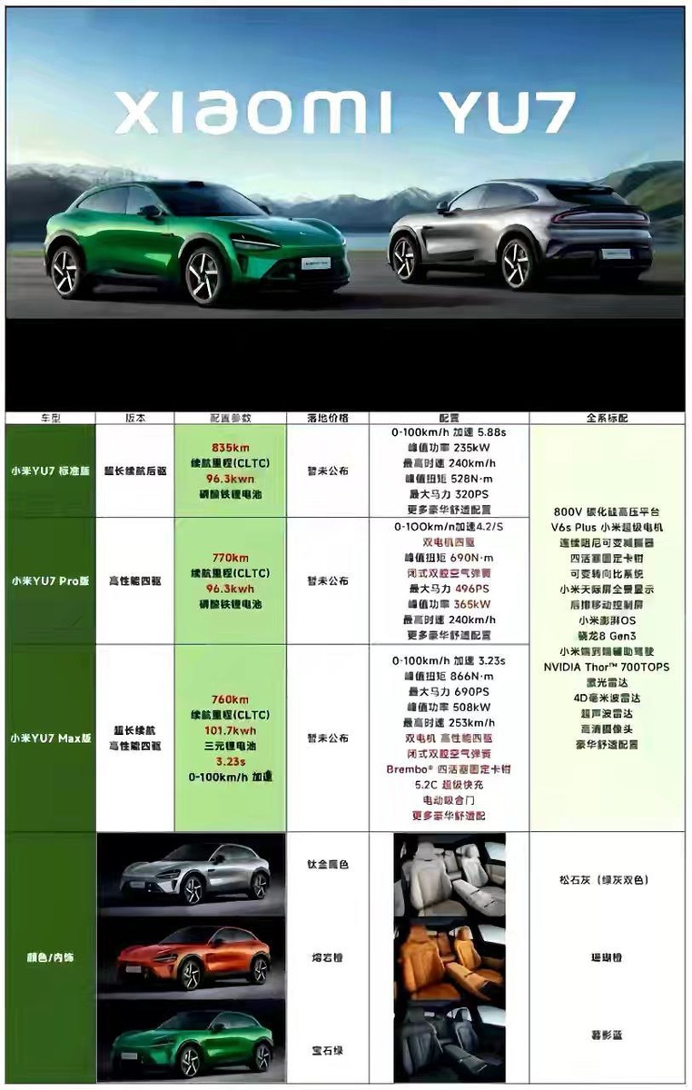 Xiaomi YU7 2025 В конце июня будет доступен к заказу в Китае.