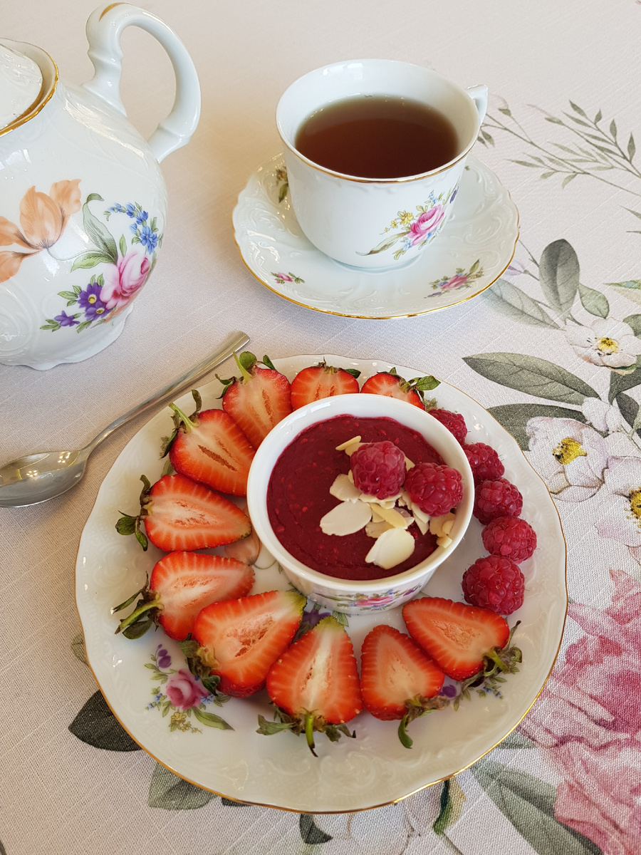Дополнить десерт миндальными лепестками и свежей ягодой. Приятного аппетита!
