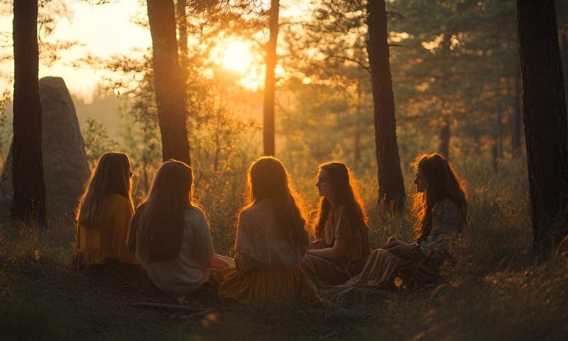 - Практика. Соберите ритуальный набор: свечи, благовония, блокнот, кристаллы (например, кварц или аметист) или природные элементы, такие как камни или ветки. Если идёте в группе, договоритесь о совместной медитации или круге силы, чтобы усилить энергию.
