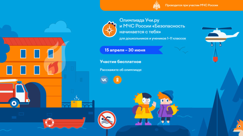С 15 апреля по 30 июня 2025 года проходит Всероссийская онлайн-олимпиада «Безопасность начинается с тебя», которая направлена на формирование ключевых знаний и навыков безопасного поведения. Участие в олимпиаде бесплатное, а посоревноваться в знаниях могут как учащиеся общеобразовательных учреждений, так и дошкольники. Олимпиада состоит из вопросов, посвященных безопасности жизнедеятельности, и проверяет знания алгоритмов действий в различных опасных ситуациях, а также правил поведения на природе и в городской среде. Школьникам предстоит пройти 15 заданий. Для дошкольников подготовлены отдельные задачи с аудиосопровождением, что делает участие комфортным даже для самых маленьких. Олимпиада проходит на образовательной платформе Учи.ру. Для участия необходимо зарегистрироваться на сайте или войти с логином и паролем от Учи.ру. Все участники соревнования получают сертификат, грамоту или диплом, в зависимости от результата, а учителя – благодарственные письма. МЧС России постоянно развива