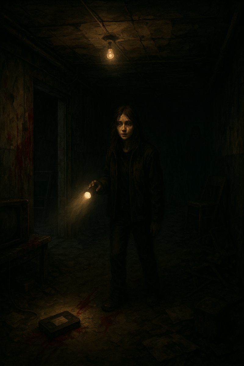 Иногда тишина говорит громче любого ужаса… Лиза стояла перед люком. Он был металлическим, старый, с облупившейся краской, и пахнул снизу не просто сыростью — сыростью с чем-то гниющим, живым. Изнутри доносилось то самое пение — детский голос всё тянул свою жуткую колыбельную. "Вверх-вниз, в тишине..." Фонарик дрожал в её руке. Вторая — сжалась в кулак. Она заставила себя открыть люк до конца. Металлические петли заскрипели, будто тоже протестовали. Под ним — ржавая лестница, уходящая в темноту. Где-то в глубине тускло горела лампа. Лиза сделала глубокий вдох и начала спуск. Лестница скрипела под каждым шагом, но держалась. Пространство под домом было больше, чем она ожидала. Пол — бетонный. Стены — обшарпанные, влажные. И снова — таблички на стенах: «U1», «U2», «U3»... Словно кто-то когда-то построил подземный комплекс. На одной из дверей — вмятина. И следы когтей. «Нет... не когтей. Человеческих ногтей», — мелькнуло в голове. Словно кто-то пытался выбраться изнутри. Лиза прошла дальше