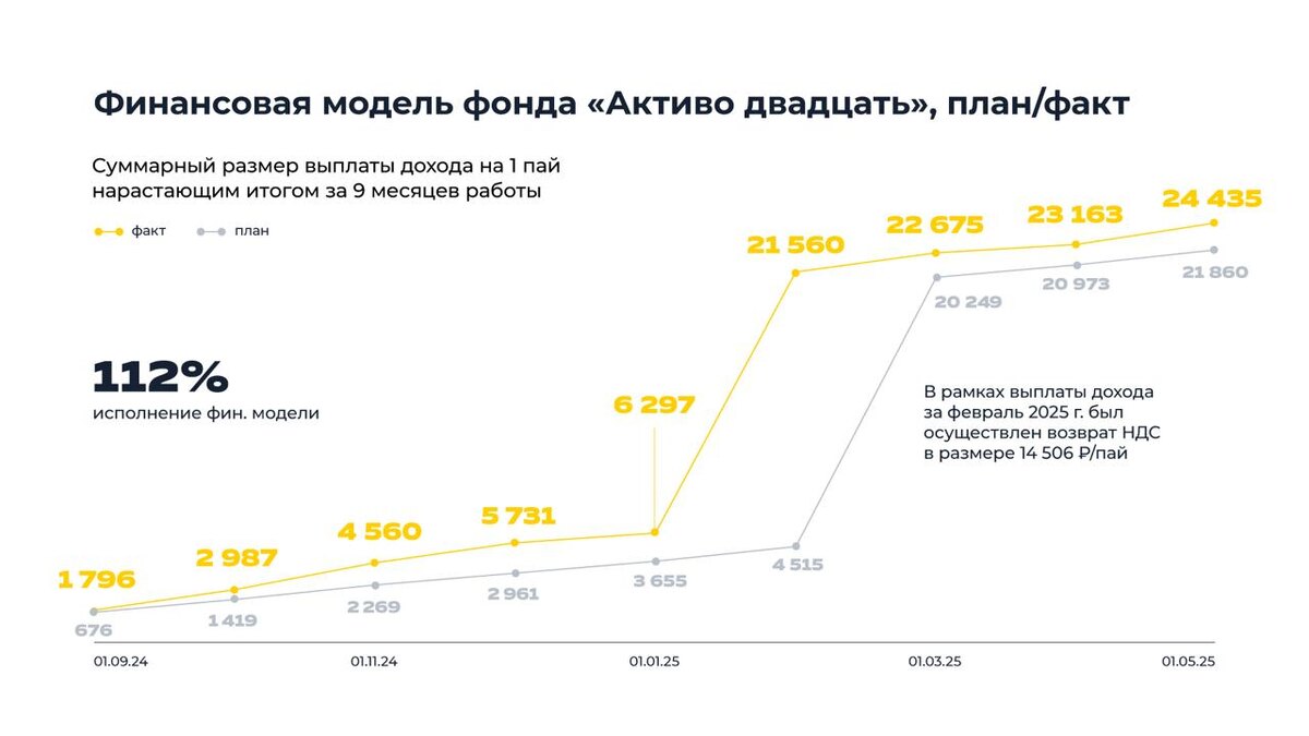 ⚡️ Исполнение финансовой модели в фонде «А-20» превышает план на 12