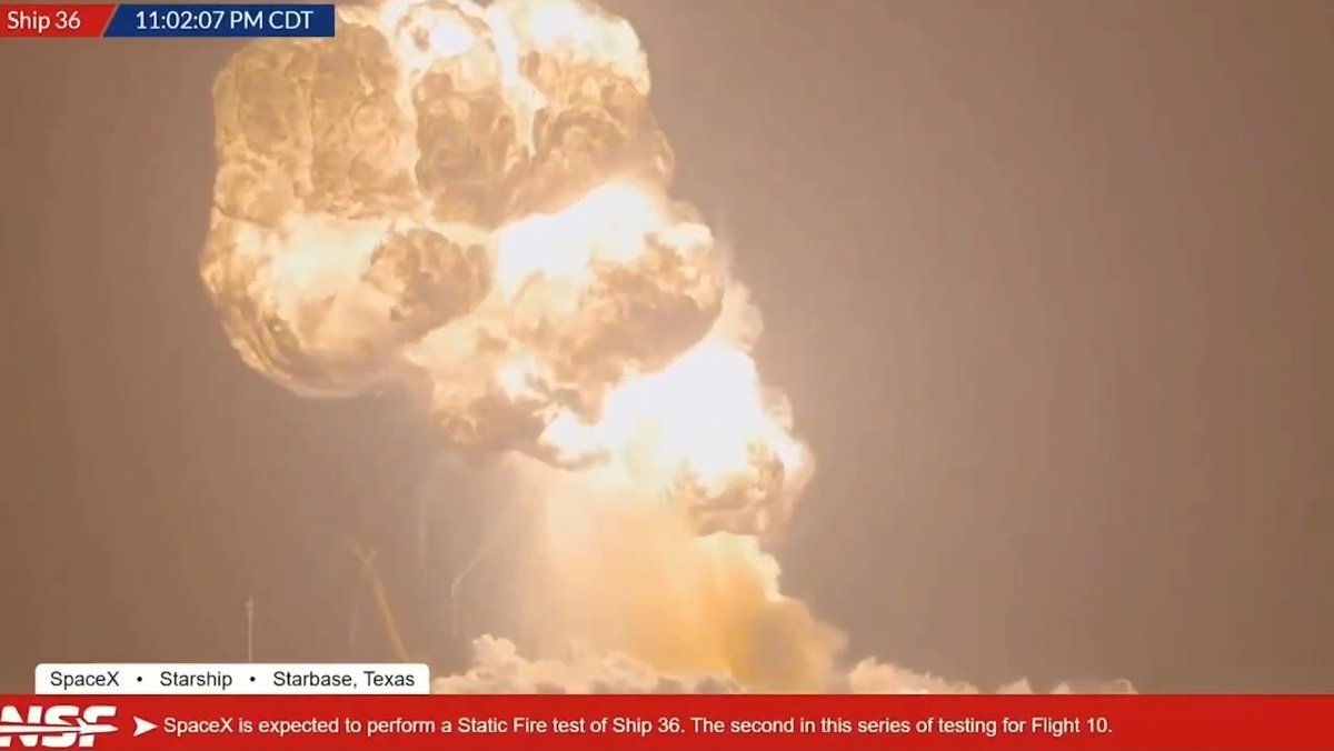 Ранее Starship (это ж надо было так назвать: глупее только «Титаник», «Челленджер» и «СуперДжет») уже взрывался в полёте на высоте более 100 км, но сейчас ракета взорвалась, даже не взлетев. Прямо на Земле. SpaceX, которая принадлежит Маску, который обеспечивает системы связи и наведения нашему противнику, намеревалась провести тестовый прожиг двигателей Starship, предназначенного для десятого по счету орбитального испытания. Ракета разлетелась вдрызг. Взрыв случился не в двигательном отсеке, а в носовой секции, где располагаются дополнительные баки. А ведь гигантской ракете Маска Starship хотели доверить важнейшие миссии НАСА. Тут ещё и с Dragon возникли внезапные проблемы. А если бы на борту были люди? Всё произошло на принадлежащем SpaceX космодроме Старбейз, расположенном в Бока-Чика (штат Техас), около 7 часов по московскому времени. Судя по кадрам видеотрансляции, в носовой части корабля, где расположены топливные баки, произошла масштабная утечка криогенного топлива, которое за