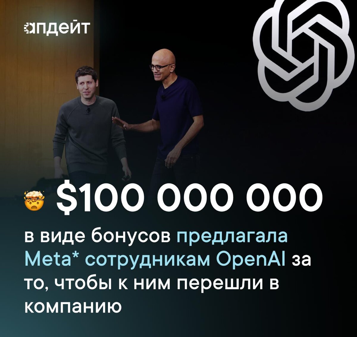 Сэм Альтман заявил, что Meta* пытается переманить сотрудников OpenAI, предлагая до $100 млн в виде бонусов и другие вознаграждения.