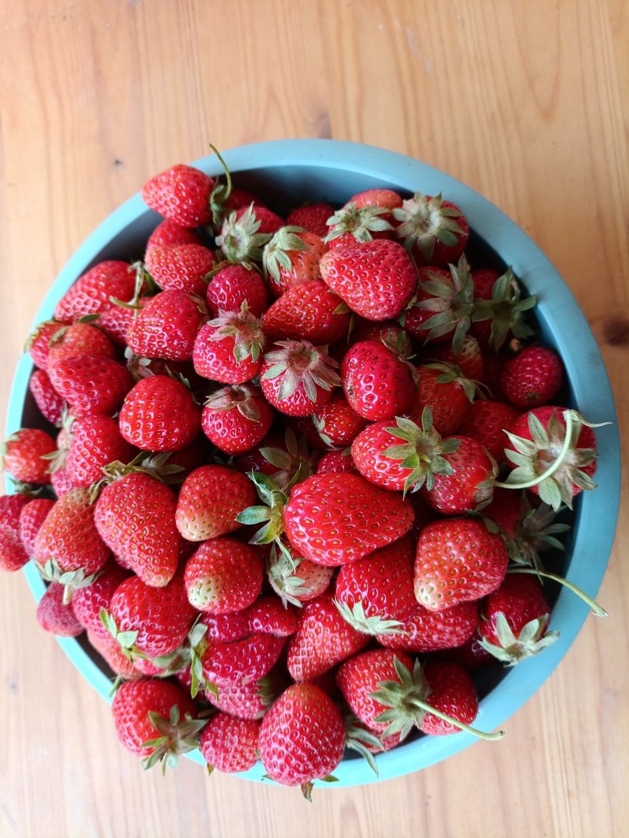 Первую клубничку сорвали 10 июня, а сегодня уже полная чаша!!! 😋
