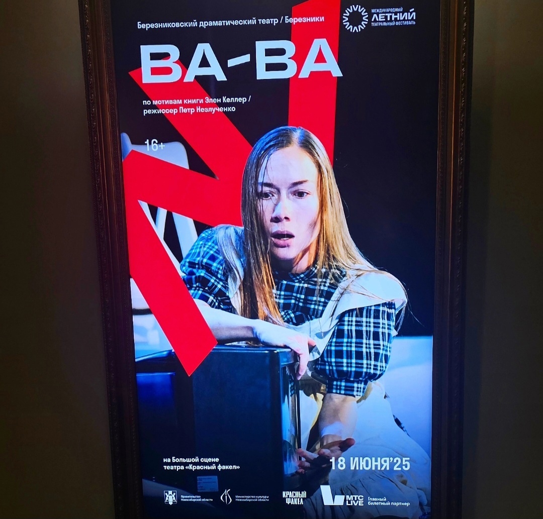 Спектакль «ва-ва» поставлен по мотивам реальной истории, это автобиография слепоглухой американки Хелен Келлер, впервые опубликованная в виде книги в 1903 году. В ней женщина рассказывает больше всего о юных годах, когда состоялось её знакомство с учительницей Энн Салливан, которая научила ему буквально всему. По мотивам романа снято несколько фильмов, а Березниковский театр драмы поставил целую постановку, причем в отдельных моментах режиссер Пётр Незлученко воспроизводил покадрово фильм. Сцену обрамляло сразу несколько телевизоров, был закадровый голос. А началась же история с приезда няня Энн Салливан в семью Келлеров. Поначалу няню восприняли в штыки, особенно глава семейства…. Ему претило противостояние няни… Мать вечно пыталась защитить дочь, которая уже давно и прочна присела ей на спину. И единственный кто скорее позитивно принял няню, был брат Элен — Джеймс. Спектакль проносится в мгновение око. Очень интересно наблюдать как выстраиваются отношения между Хелен и Энн, это насто