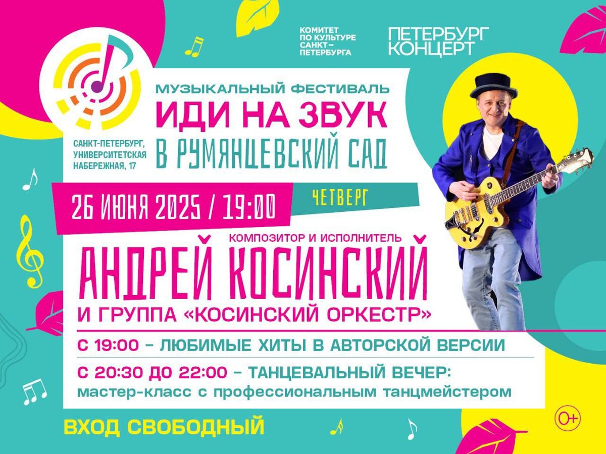 26 июня состоится концерт композитора и певца Андрея Косинского и группы «Косинский Оркестр».