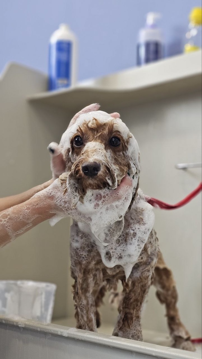 За окном дождик, а кудрявая шёрстка мальтипу нуждается в правильном мытье и сушке, для предотвращения появления колтунов 🐰