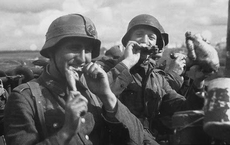 На фоне тотального мародёрства и «памяток» для солдат Вермахта, в которых буквально по пунктам расписывалось, как обчищать местных жителей, звучит это как анекдот. Но факт остаётся фактом: в оккупированных деревнях были продукты, которые фашисты обходили стороной. Не потому что жалели, а потому что не понимали, побаивались — или попросту брезговали. И даже с самых голодных складов их не трогали. Когда фашисты входили в сёла, первое, что искали, — это еду и алкоголь. Причём действовали они не по наитию, а строго по инструкции: «Памятка о трофейном имуществе» предписывала забирать у населения всё полезное — от картошки до скотины. Особенно ценились хлеб, мясо, сало, молоко и, конечно, самогон. Бывали случаи, когда фашисты уводили всех кур и свиней, а потом ещё и назначали «натуральный налог»: ежедневно поставлять яйца, молоко, масло. Отказ? Расстрел. При этом в одних регионах отбирали всё подчистую, в других — пытались «меняться» на сигареты, шоколад и консервные пайки. Такие «цивилиз
