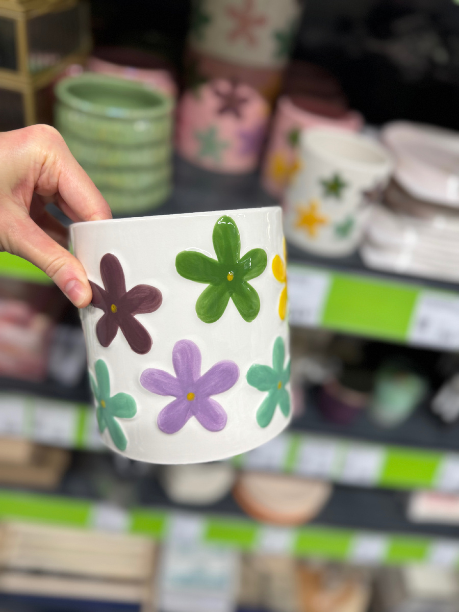 Зашла в магазин за одной штучкой❤️ Уж очень она мне понравилась) И, конечно, прошерстила полочки на предмет чего-нибудь эдакого😉 Цветочная коллекция продолжает приезжать частями))) Появились наконец кашпо с цветочками) Большие 299р Есть ещё в пудровом цвете. Когда смотришь на них живьем даже не поймешь какие круче)) Есть маленькие. По 249р Pinterest подъехал да и только)) У них снизу дырочка. Так что нужен поддон. Можно использовать как вазу для сухоцветов, карандашницу или для столовых приборов. Кстати, обнаружила кое-что для кухни. Огромная бутылка моющего средства. Деревянная серия пополняется новыми моделями. Терка 69р. В этой коллекции представлена и посуда с имитацией плетения. Милые салфетницы. Правда нужно выбирать😉 Цвета: коричневый, серый, белый. К ним есть кружки) В недавнем обзоре показывала коричневые. Появились белые. Подносы с приятными рисунками. Вариантов больше, но есть моментики. Надо выбирать😅 Стоимость 69р А зашла я за соусницей цветок) У нее большой диаметр 1