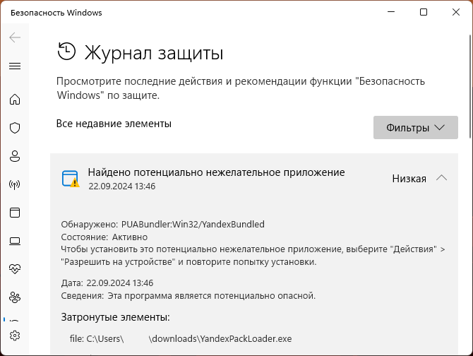 При скачивании каких-либо программ или игр из Интернета пользователи могут столкнуться с тем, что встроенный антивирус Windows сообщает о потенциально опасной программе YandexBundled. В этой простой инструкции о том, что такое PUABundler:Win32/YandexBundled и как поступить, если вы столкнулись с обнаружением этого потенциально нежелательного приложения. Для различных обнаруживаемых вирусов, троянов, потенциально нежелательных приложений в различных антивирусах существуют стандартные обозначения. В случае Microsoft Defender все угрозы, названия которых начинается с PUA (а также PUP) — это потенциально нежелательные приложения (Potentially Unwanted Application), которое не является вирусом, но в некоторых случаях может представлять угрозу. PUABundler — нежелательное ПО, которое может устанавливать другие программы и компоненты без желания и, иногда, ведома пользователя. И, наконец, YandexBundled — указание на то, что будут устанавливаться программы Яндекса. Как правило, сценарий бывает с