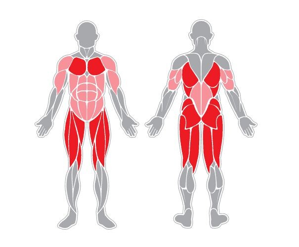- Заниматься мы будем однозначно по системе "Full Body", то есть прорабатывать все тело на каждой тренировке. Можно конечно разделить тело на две части по принципу "ВЕРХ-НИЗ" или "Тяни-Толкай", но так как у нас всего лишь 2 тренировочных дня - каждая группа мышц будет задействована лишь 1 раз в неделю. А по последним научным исследованиям , мы знаем, что тренировать мышечную группу лучше чаще - около 2 раз в неделю. Это позволяет поддерживать постоянный синтез белка в мышцах. Также, это позволяет лучше развивать нейронные связи, за счёт более частого выполнения движения. К тому же, мы можем выполнить более эффективный тренировочный объём, так как равномерно распределяем его между днями, а не пытаемся выполнять все свои рабочие подходы на мышечную группу в 1 день.