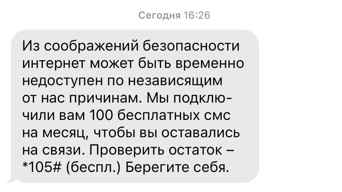 Наблюдение: Билайн впервые прислал смс об ограничении работы мобильного интернета Подключил ещё 100 бесплатных сообщений, приятно 📲 @relaxsaratov