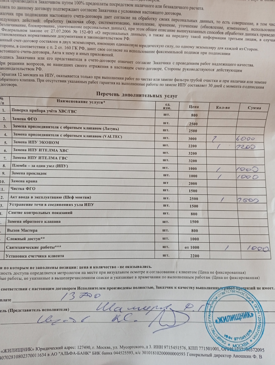У меня в родительской квартире, которая сейчас стоит пустая после ухода родителей, закончился межповерочный интервал счётчика холодной воды. Вода там не расходуется, но муниципальную контору, которая занимается обслуживанием дома, это не интересует. Если не провести поверку, то начисления за воду будут начислять по общедомовому тарифу. То есть с меня потребуют сумму, кратно большую, чем платить по счётчику. Вызванный мастер сразу заявил, что требуется замена счётчика, так как, по его словам, он стоит с 2007 года. Стоить это будет 7700 рублей. Скажу сразу, что это сильно дороже, чем покупать счётчик самому. Дороже почти в десять раз! Мастер ещё раз взглянул на счётчик и вынес следующий вердикт: требуется замена присоединителя с обратным клапаном. Две штуки. Каждый по 3000 рублей. То есть ещё 6000. Тут я просто выпал в осадок. Ведь комплект присоединителей я недавно покупал на дачу. Стоит он 193 руб. Наценка в пятнадцать раз — это рекорд. Ничего себе сделал поверку по 550 рублей! Не