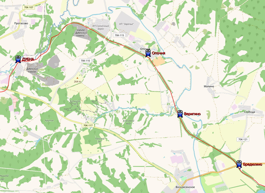 Река Упа здесь уже совсем близко, в неё впадает небольшая река Вера с очень крутыми берегами. Мост через Веру – единственный на этом участке с бетонными плитами, использующийся для проезда до сих пор: