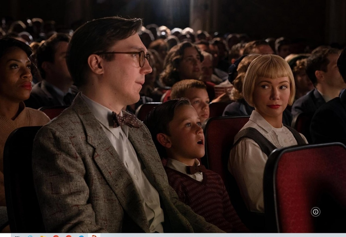 — Знаешь, как это работает? Там есть большая машина, проектор, а внутри неё яркий свет, и она проецирует снимки клоунов и акробатов. — И слонов! — Проецирует, значит, показывает на экране. — А ещё забавные сцены! — Забавные сцены. Там будто гигантский фонарик. И снимки движутся мимо фонарика очень быстро — по 24 картинки в секунду. А в твоей голове каждый снимок задерживается секунд на 15. Это называется инерцией зрения. Снимки движутся куда быстрее, чем ты способен отследить. И так кинопроектор внушает нам, что статичные картинки двигаются, создавая фильм! — Кино — это словно сон, незабываемый сон. Вот увидишь, когда увидим фильм, у тебя будет улыбка до ушей. — Поспешим. Фабельманы В 2022 Стивен Спилберг снял свой самый личный фильм о семье, детстве и первом опыте в кино. Отца юного Сэмми Фабельмана, будущего гениального режиссёра, сыграл давешний вундеркинд, ныне маститый голливудский актёр Пол Дано. Мальчику из «Маленькой мисс счастье» и «Нефти» исполнилось 41. Большой Киновски ?