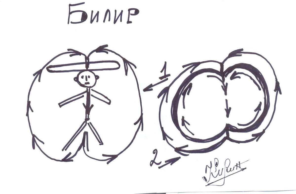 Билир - внешний инвазионный фантом. В этом году, я почти три дня, перед родительским днём, находился на местном Бунгурском кладбище, занимался могилой маменьки, и больше всего, от работы, меня отвлекали местные кладбищенские Билиры, причём некоторые из них, меня сильно удивили. Но для начала, я бы хотел, более подробно, определиться с таким понятием как Билир, и дать ему точное описание и принадлежность. Билир - это внешний сферический фантом и как всегда вторичный, который обволакивает с внешней стороны Салтан человека. Эта информационная сфера, является как бы проникающей сквозь внешнее информационное поле человека, и зачастую влияет не только на программу пребывания, но и на программу пребывания близких родственников, понижая информационную температуру их душ, чем соответственно укорачивает их жизнь. Существует несколько видов Билиров от Дьявола (нижнего информационного поля), 1 Тёмный матовый Билир, поглощающий потоки информации, называется Мор - Билир, 2 каровый (чёрный с отливом) на поверхности которого по поверхности хаотично пробегают с треском молнии, озаряя поверхность малиновыми вспышками, называется Кар - Билир, 3 черная сфера с растянутым по экватору бывшим нимбом человека называется Никро Билир, 4 черное переливающееся яблоко, выворачивающееся на изнанку, через центральный тоннель высоких энергий - Изматор Билир, 5 и последний ТАТО БИЛИР, Пурпурный Салтан, итак же похож на яблоко, выворачивающееся на изнанку через центр, покрытый мириадами блесков. Билиры от А,Раийи (верхнего информационного поля, 1 РА Билир - ярко светлый перламутровый, с застывшими исходящими лучами, которые перпендикулярно поверхности мерцают и хаотично передвигаются, 2 Родовой Билир - ослепительно белый матовый, 3 Мама Билир - чисто зеркальный белый, с извивающимися личиками, которые отрываясь от поверхности улетают и гаснут, 4 Амур Билир - ослепительно белый Салтан, по поверхности которого, проскакивают золотые ветвиги (молнии), причём золотые молнии, или стрелы, могут проходить несколько оборотов вокруг сферы, и данный Салтан мерцает золотом, и последний пятый МАТО БИЛИР - белый Салтан покрытый мириадами блесков. В итоге, существует около 10 Билиров, причём пять светлых среди них один ярко выраженный из МАТО, и пять чёрных, и среди них, так же один из ТАТО. Человек с рождения, находится внутри собственного информационного поля, которое имеет форму Салтан, в виде яблока рисунок 1, и вся информация постоянно протекает по поверхности и через центральный тоннель или сердцевину яблока, проходя через нимб, защищающий от вирусов. Когда ребёнок рождается, то у него, поверх своего Билира, появляется защитный зеркальный Билир, который создаётся любовью его матери - рисунок 2. А вот если в девушку влюбиться некий парень, и будет страдать от безответной любви, то вокруг её Билира, может возникнуть Мор Билир, а если мужчина и женщина любят друг друга, то они создают поверх Билира партнера, Амур Билиры. Самая секретная Магия в допотопном мире, которая основывалась на Данайских Практиках, называлась Билирные Практики, и знания передавались исключительно по наследству, и за пределы рода, не выходили. Услуги специалистов по Билирным Практикам, считались самыми дорогими, и элитными, а в допотопной Европе, были засекречены. Все европейские ведьмы, обладающие технолог
