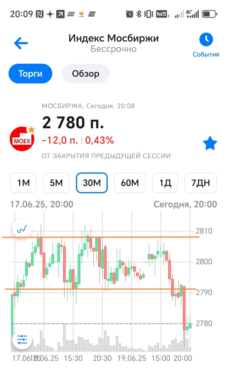 Здравствуйте, дорогие читатели. Продолжаю рассказывать о своих трейдерских похождениях на срочном рынке. День второй. Продолжил пилить краткосрочный боковик по вечному фьючерсу на индекс мосбиржи. Вчерашняя сделка на покупку малость не дошла до тейк профита, и закрылась по стоплоссу. И сразу пришёл сигнал на вход в шорт. График пробил нижнюю границу боковика и закрылся под ней. Зашортил 2 контракта по 2787. Согласно риск менеджменту стоп лосс выставил на отметке 2795, чтобы убыток по сделке не превысил 1% от портфеля, тейк на отметке 2765. Стоп выставлял крайне неохотно, приходится заставлять себя. Сразу после входа в сделку, рынок начал отжимать меня, почти дошёл до стопа, одного пункта не хватило. Так уж устроен рынок - постоянно заставляет хомяков сомневаться в правильности своих решений. Поймал себя на мысли, что сильно переживаю за результат. У меня так во всех делах, сильно зацикливаюсь на положительном результате. Хотя умом понимаю, что в трейдинге убыточные сделки это неизбе